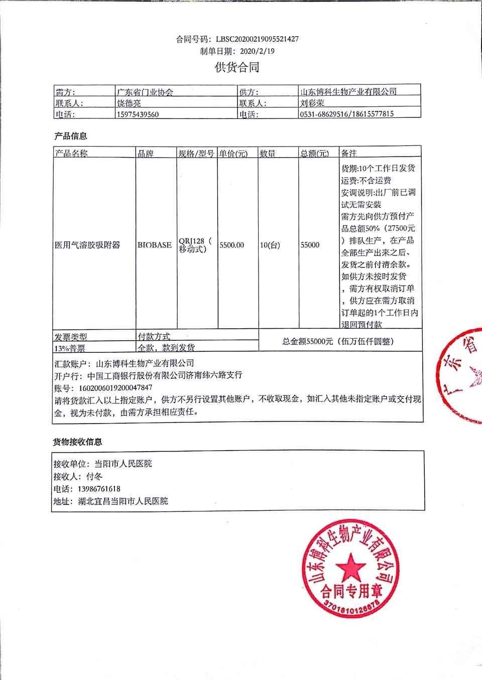 广东省门业协会在2月4日发起“防控疫情公益募捐“倡议后,截止到2月17日共收到173家企业单位及个人登记捐款总额为229967元。其中,马来西亚峇株巴辖家具同业公会捐款5000元。这些善款将用与湖北疫情防控急需采购医疗防护用品的医院。近日,广东省门业协会秘书处经过多方努力,已联系到山东博科生物产业有限公司,采购医用气溶胶吸附器10台,总额55000元,另外运费2500元,共合计57500元物资。目前第三批抗疫物资(10台医用气溶胶吸附器)已发往湖北宜昌当阳市人民医院,正待医院签收。