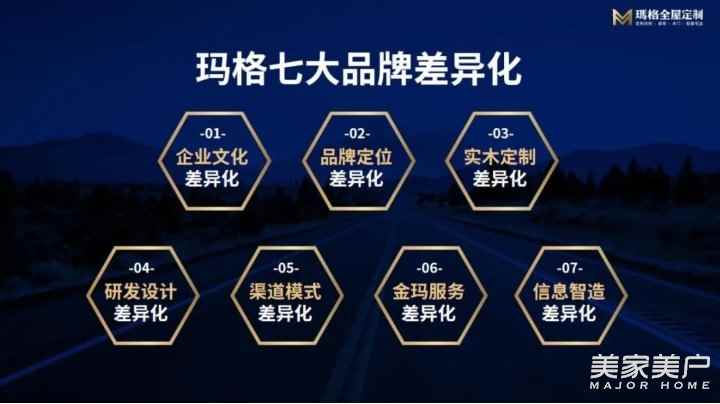最后,我跟大家分享下玛格除了自身的系统能力外,还构建了七大品牌差异化,分别是企业文化差异化、品牌定位差异化、实木定制差异化、研发设计差异化、渠道模式差异化、金玛服务差异化、智能制造差异化。