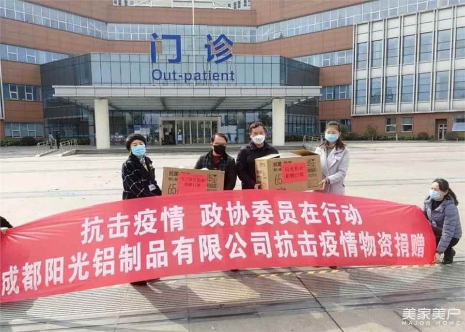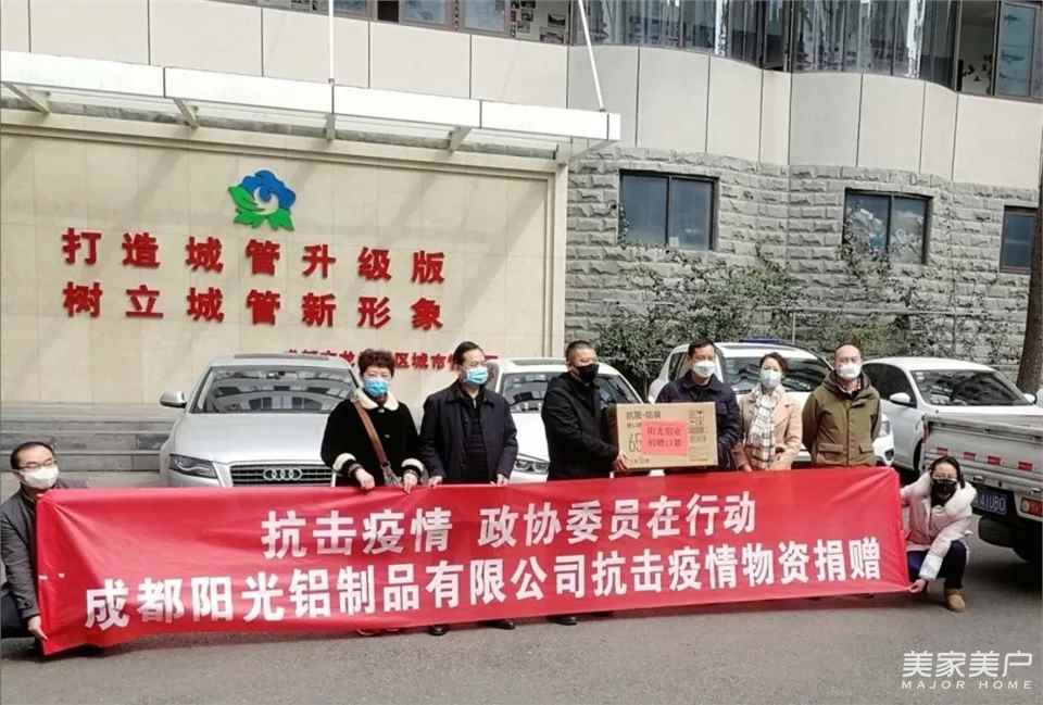 2020年,注定是一个不平凡的开始。新冠肺炎疫情还在增长的确诊病例,牵动着每一位中国人的心。一方有难,八方支援!自新冠肺炎疫情爆发以来,战“疫”面前,面临各种防护口罩、消毒用具等防疫物资紧缺的困难,成都阳光铝业积极行动,以各种途径和形式捐赠物资,表达爱心,充分彰显了社会大爱。