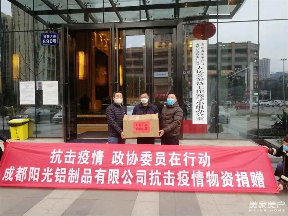 2月18日,成都阳光铝业向龙泉驿区大运会筹备工作领导小组办公室捐赠1040个口罩(见下图)