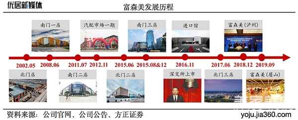 2018年,富森美推出“拎包入住”服务,满足消费者从清水房-成品房-精装房-拎包入住房的一站式家装需求,而陆续开业的多家富森美拎包入住生活馆则开启了富森美泛家居生活业态的集群发展模式。