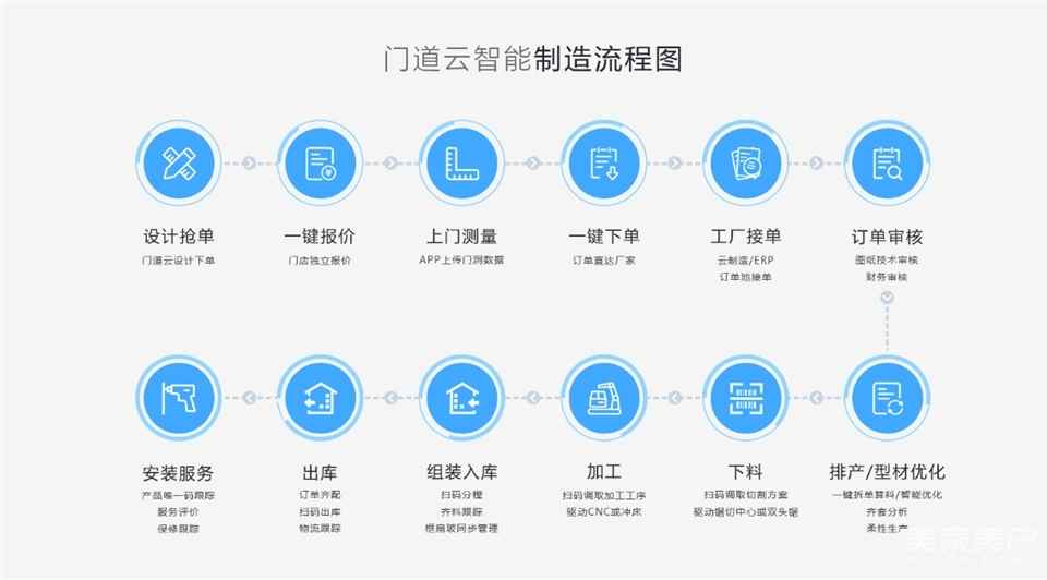 疫情之下,所有企业都责无旁贷,携手共助。门道云在2020年决定帮助一千家企业实现前后端一体化,数字化经营,打造行业环境,帮助行业持续健康发展。帮助企业深入ERP管理系统,实现设备对接,打通型材切割、加工、分拣环节,基本实现家装工业4.0架构。全线落地企业内部信息化管理系统,实现从前端到后端的全数字化转型服务。