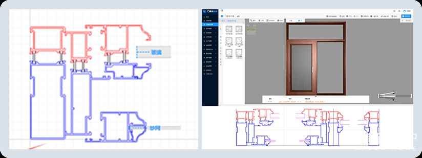 门道云创新性CAD建库,应对家装门窗产品快速更新换代。抛弃繁琐公式录入,全新CAD技术建库,一次建库,手机、IPAD、PC端个性化设计,真实门窗3D展示。3D数字化的前后端一体化,接单更高效,减少出错。前后端完全打通,门店导购只需一次设计,直接下单到工厂,工厂无需画图,一键拆单,完成加工数据。