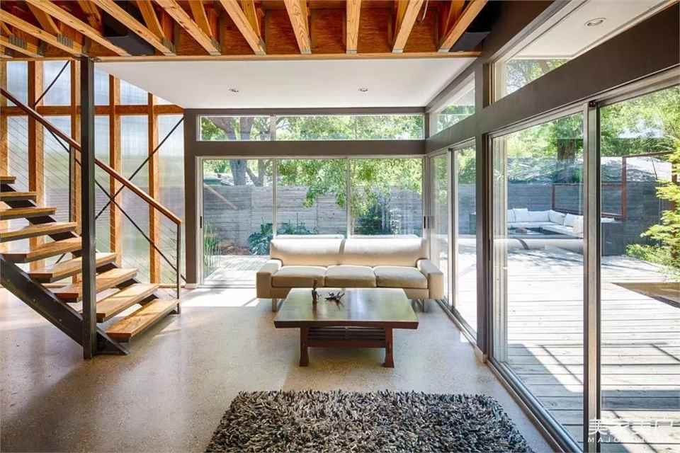 采用落地窗和玻璃门的设计,可以将一个家的可视面达到最大化,它们不但有利于室外光线的射入,更能凸显出室内的开阔之感。