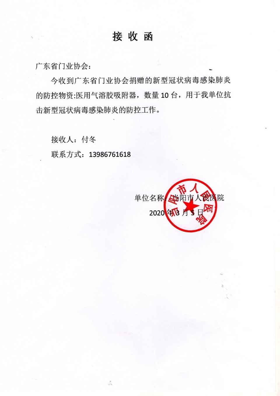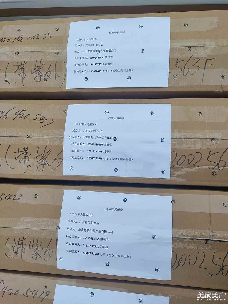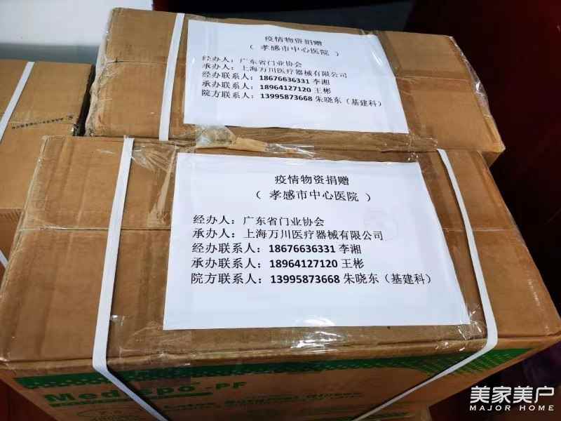 广东省门业协会在2月4日发起“防控疫情公益募捐”倡议后,截止到2月17日共收到173家企业单位及个人登记捐款总额为229967元。其中,马来西亚峇株巴辖家具同业公会捐款5000元。这些善款已用于湖北疫情防控急需采购医疗防护用品的医院。近日,广东省门业协会秘书处经过多方努力,已联系到上海万川医疗器械有限公司,首笔103750元善款已采购医护防控物资并发至湖北孝感中心医院。