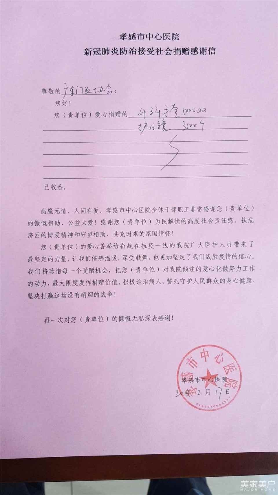 募捐第一笔107171元捐赠物资费用,已购买抗疫物资并发到湖北省孝感市中心医院。首笔捐赠物资及明细费用如下: