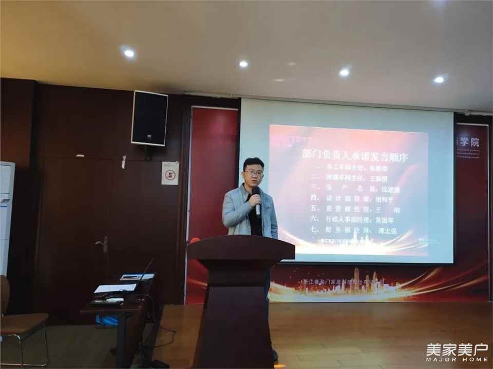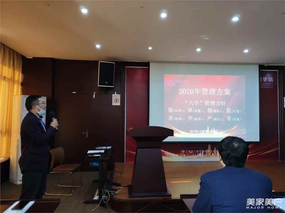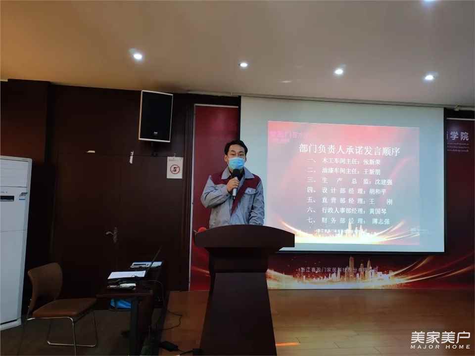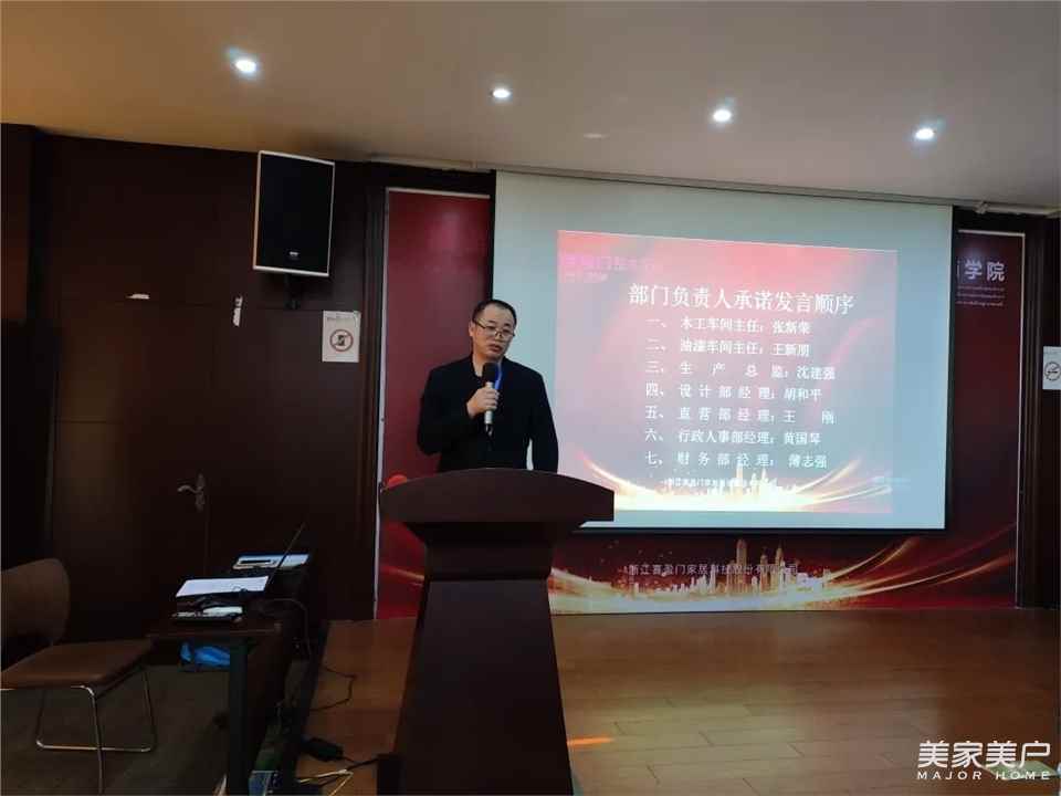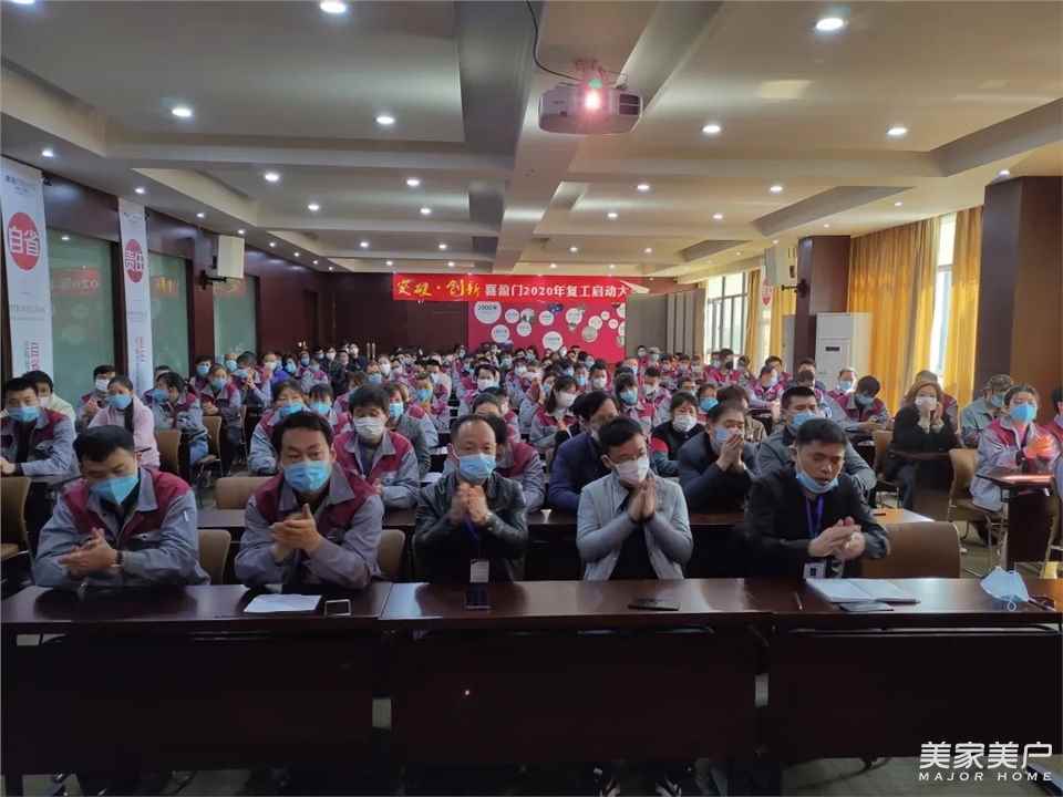 随后喜盈门总经理沈建强上台发言,沈总表示今年的生产目标是通过提高产品品质,将喜盈门打造为江浙地区标杆企业,并要求全体家人振奋精神,德才兼备,鼓足干劲,高标准、高水平、高起点的组织生产任务,强化责任落实、严控产品质量。2020年是一场危机也是一场转机,喜盈门不走弯路,统一思想,给业主、给企业、给自己交出一份满意的答卷!