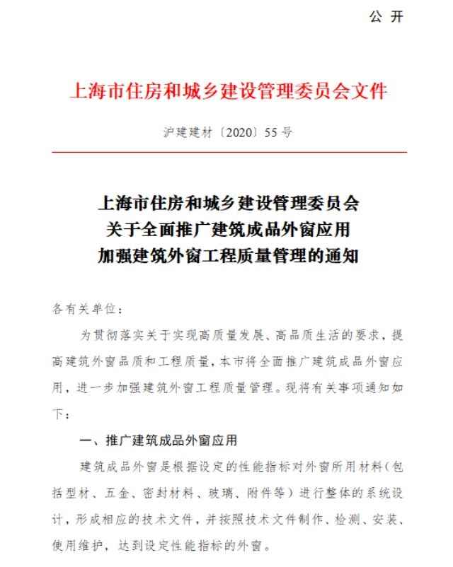为贯彻落实关于实现高质量发展、高品质生活的要求,提高建筑外窗品质和工程质量,本市将全面推广建筑成品外窗应用,进一步加强建筑外窗工程质量管理。