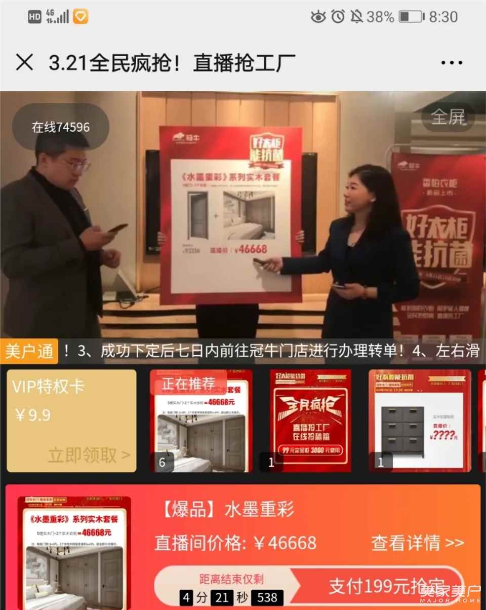 2020年被突如其来的新型冠状肺炎病毒疫情袭击,全民宅家,冠牛木门·整体家居以积极的姿态探索出一条“新道路”,3月21日19点30分,冠牛总部联动全国经销商,在冠牛总部举行了开年首场大型“好衣柜 能抗菌”全国直播抢工厂活动,直播间里掀起了一场品牌与消费者之间的狂欢。
