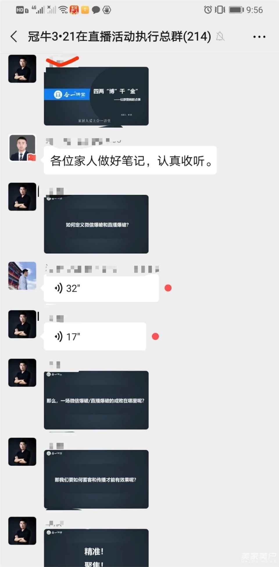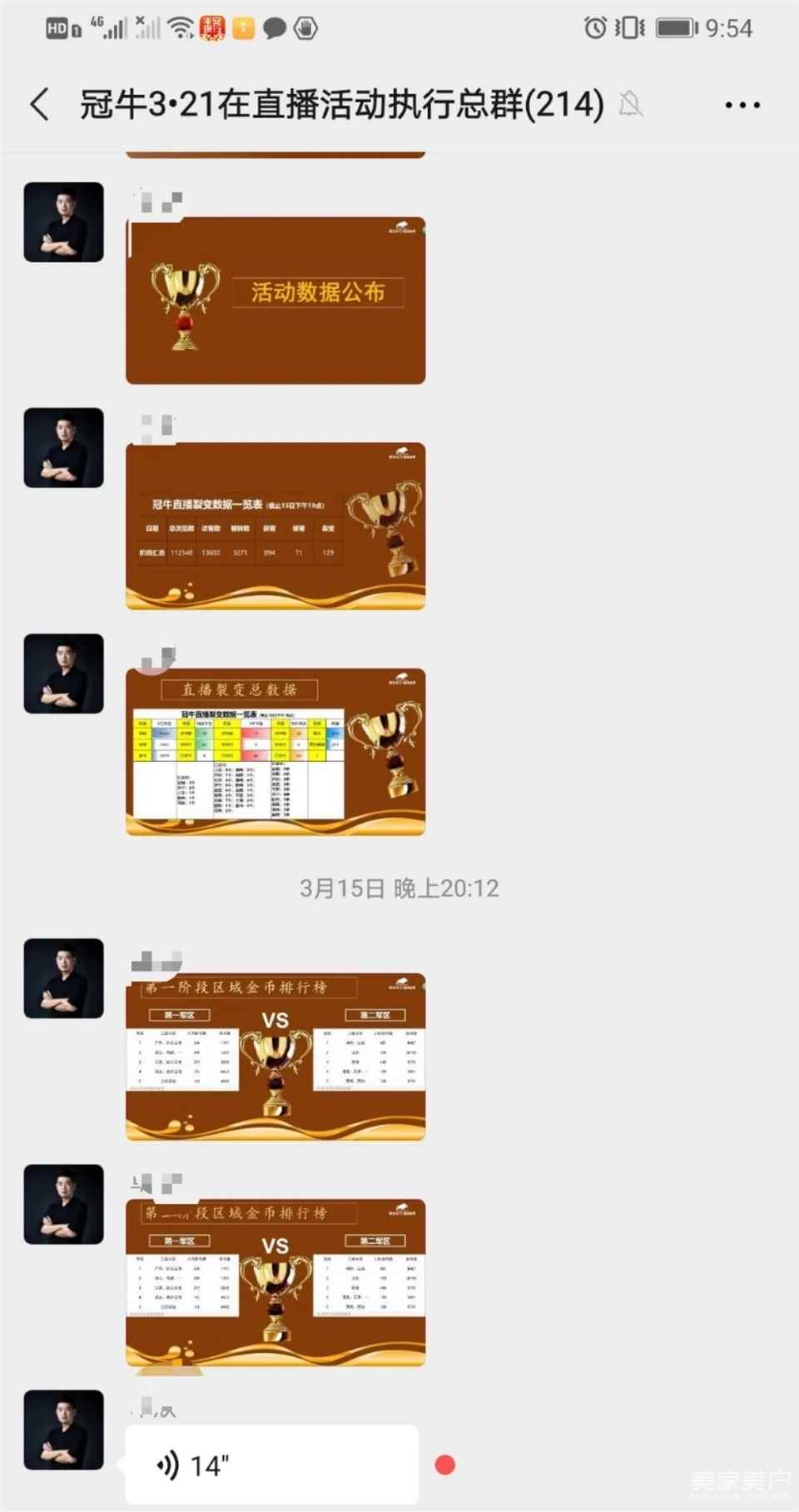 在冠牛公司总部直播活动执行工作组的指导下,全国各地门店积极配合,迅速把员工拉到公司此次直播活动的执行群参加培训,同时,已经可以开门营业的门店坚持每天早上在店里开早会,而还不可以复工的门店则在自己门店的微信群里执行,制定好新的一天的业务目标,分配好当天的工作,部署直播活动的各项工作;晚上也坚持开夕会,总结当天的工作,分享经验。