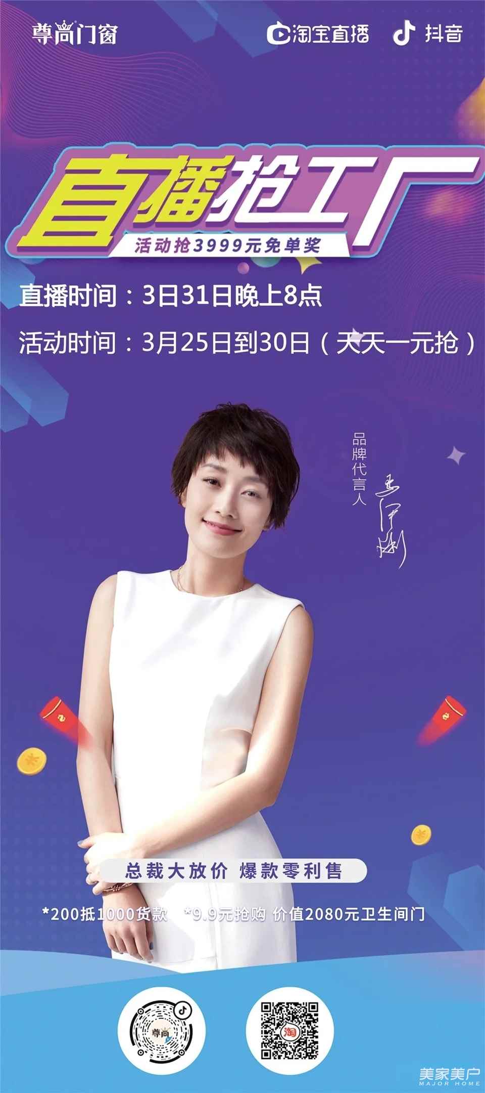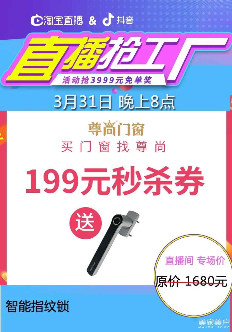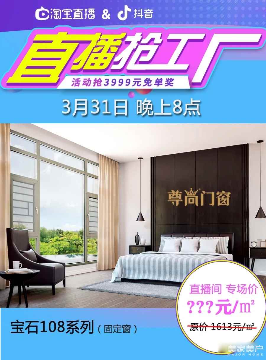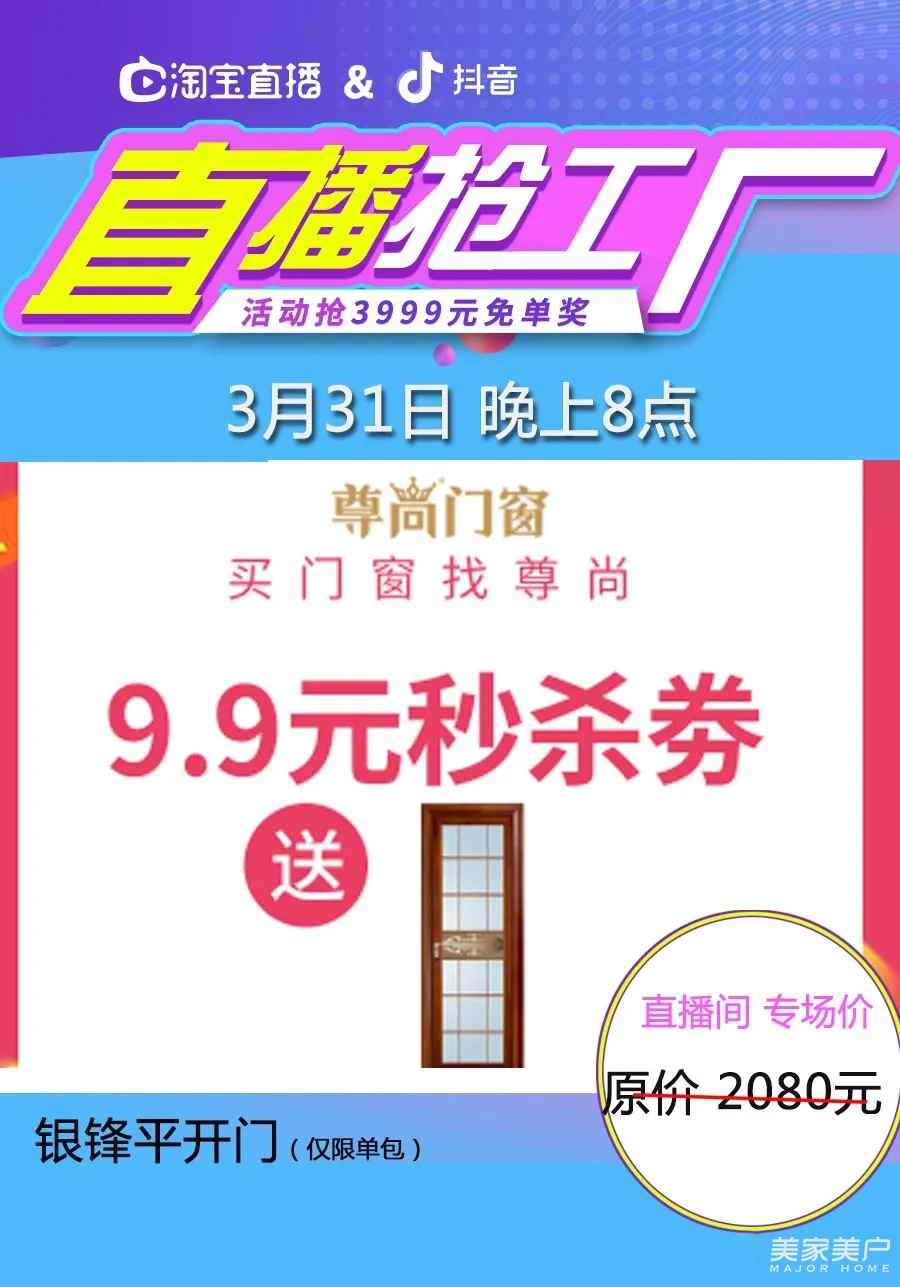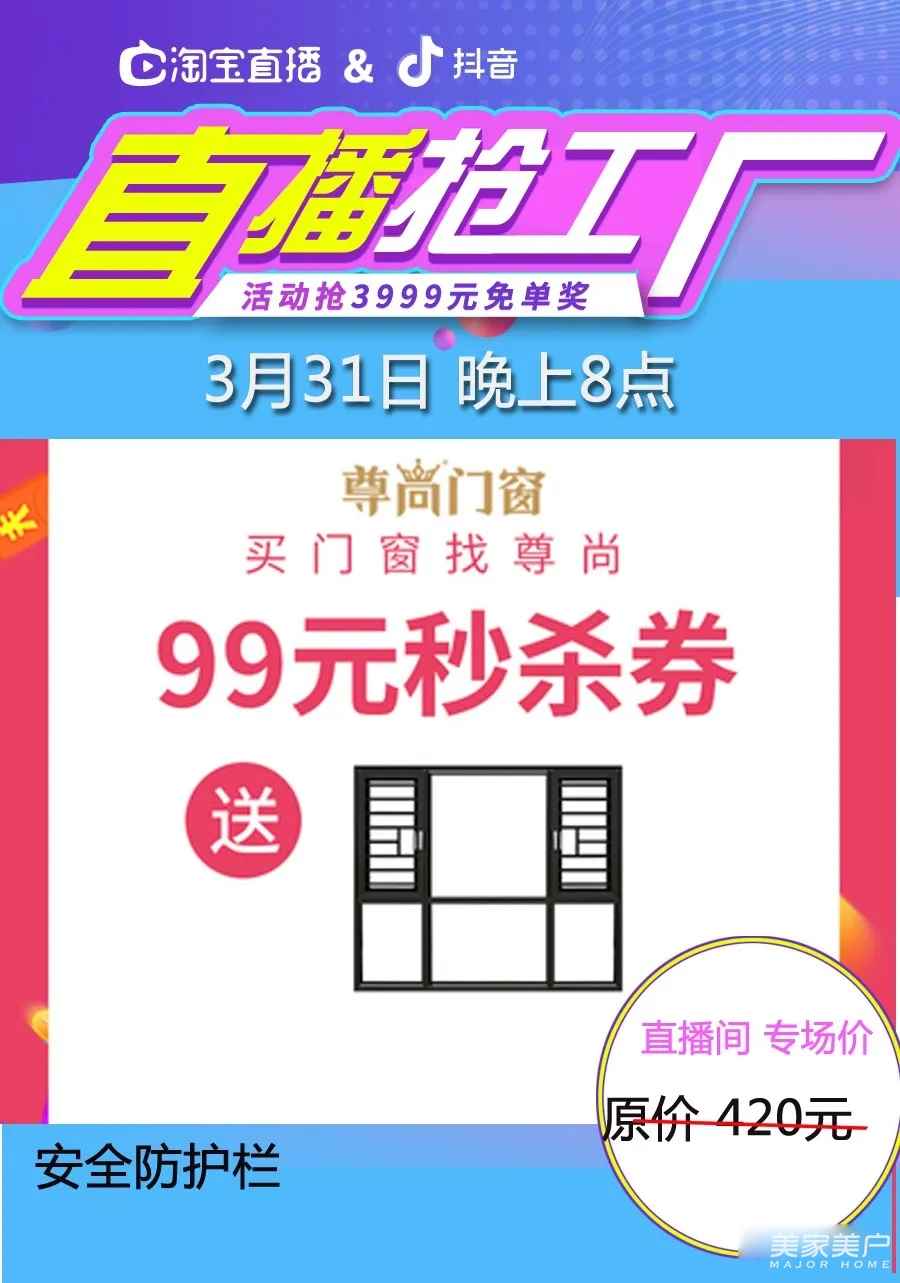 危机也是转机,关键看你是否抓住机会。在2020即将春暖花开的3月最后一天时间里,尊尚门窗准备了一波厚礼在淘宝直播中带给全国准业主们:淘宝搜索并关注尊尚门窗工厂店(店名),待主播开播立即进场疯狂抢。