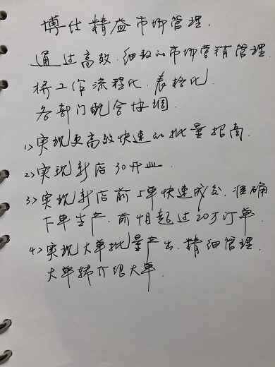 李总发言时提出,大家一定要严格按照老师的要求,积极配合精益市场管理,保证精益市场管理必须成功。