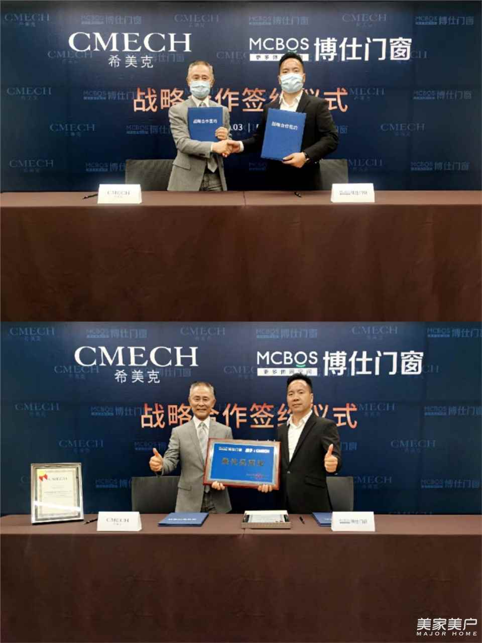 现场,经过双方协商并达成一致的诚意合作意向,佛山博仕门窗董事长王湘根及CMECH(希美克)董事长蔡山骐代表双方签订了战略合作意向书。
