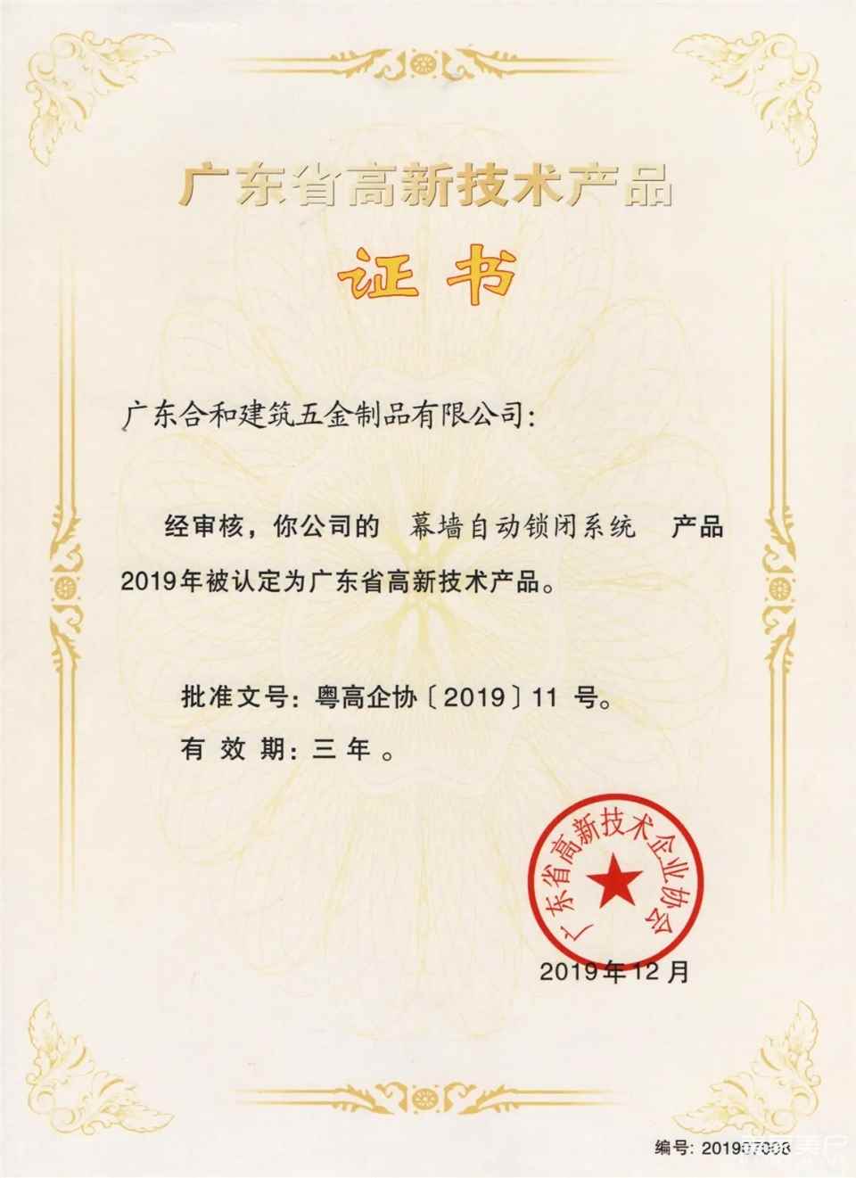 合和建筑五金在众多技术产品中脱颖而出,荣获此项荣誉不仅是对合和技术研发能力和自主创新能力的高度肯定,更有力地增强我司高新技术产品优势及核心竞争力,为参与全球范围的市场竞争提供了强有力的技术支撑。