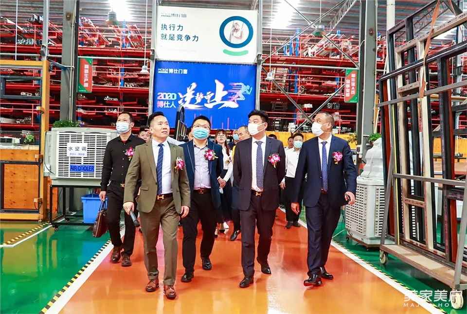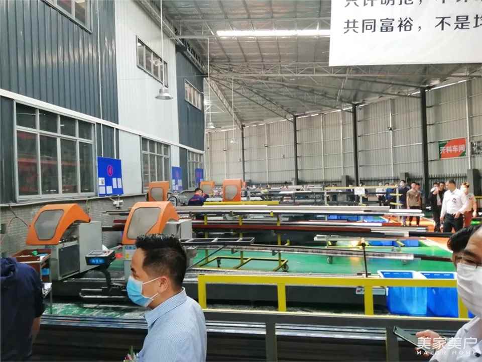 会议之前,在王董的陪同下,众多嘉宾首先参观了博仕门窗生产制造基地,王董从原材料、设备、工艺及产品检验等为大家做了详细讲解。