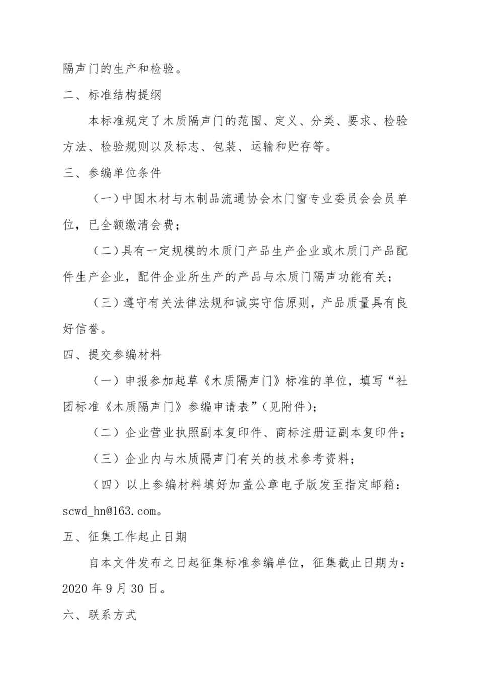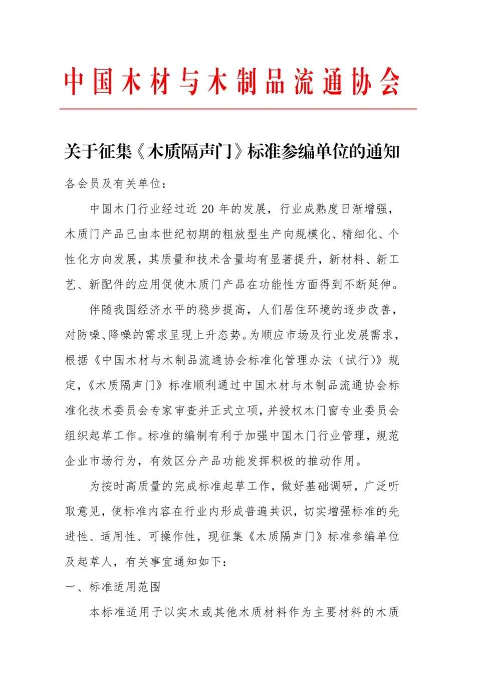 协会秘书处将汇总采纳起草单位提出的合理意见及建议,形成社团标准《木质隔声门》(征求意见稿),向行业进行公示并公开征求意见,欢迎社会各界围绕标准内容向起草单位——中国木材与木制品流通协会木门窗专业委员会提出建议和修改意见。联系方式:010-68656629。