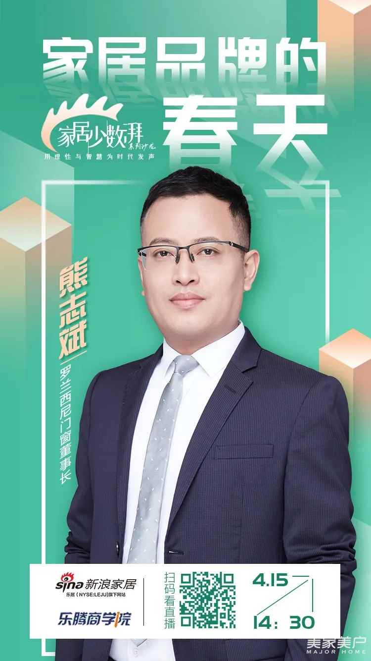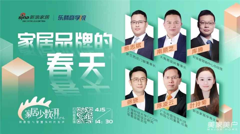 4月15日14:30新浪家居特别策划主题为“家居品牌的春天”的线上沙龙,邀请行业内5位重量级大咖,共同聚焦后疫情时代家居产业的挑战与机遇。面对新需求、新挑战,家居品牌如何脱颖而出?企业如何以最好的姿态迎接行业春天?
