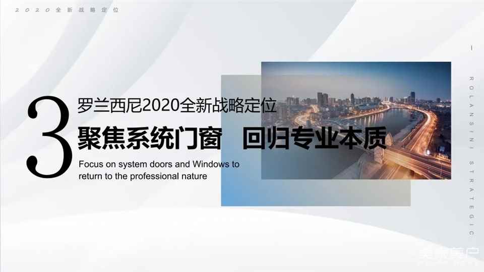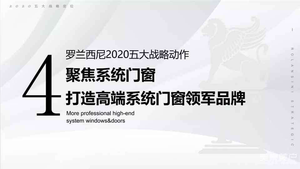 罗兰西尼门窗通过创新技术,整合全球资源,为用户提供专业化、高品质、 高性能的铝合金系统门窗解决方案;通过2020五大战略动作,赋能经销商,做好全链路用户体验。