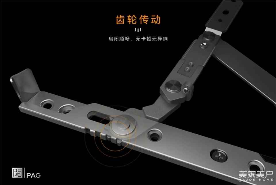 PG齿轮铰链58采用齿轮式设计,利用齿轮与基座的连续啮合运动,使铰链启闭时受力均匀稳定,简单而巧妙,彻底告别卡顿、异响等问题。以到达门窗启闭省力,安静顺畅的效果。