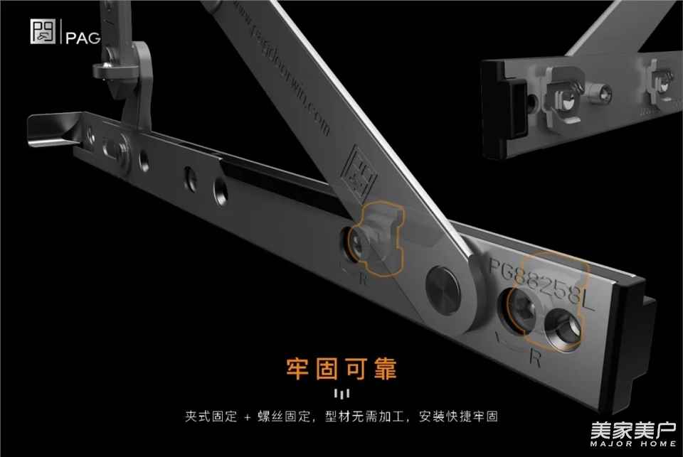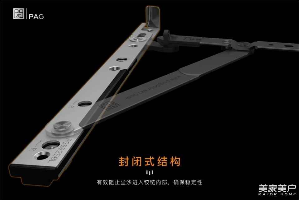 于初代PG铰链研发至今,派阁对门窗五金倾注100%的专注,重视产品品质和性能,细心收集终端用户意见,将其分析、提炼,对原有成熟设计上加以创新,新一代PG铰链58在其结构与性能上,都进行了创造性的升级。