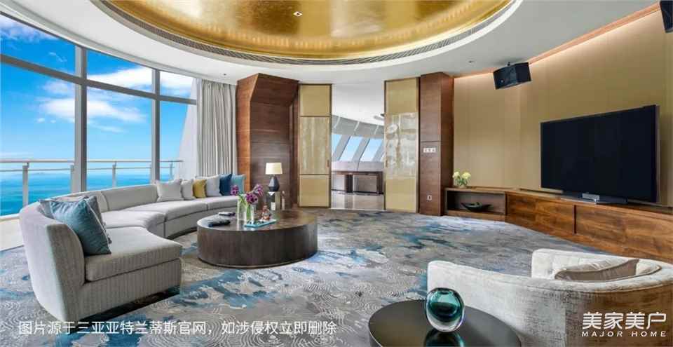 三亚亚特兰蒂斯酒店外观犹如帆船,寓意一帆风顺。酒店内部拥有1314间全海景客房,除了5间个性独特的水底套房外,其余客房均分布在6-55F,可以俯瞰和远眺不同角度的无敌海景,其中最大的套房面积达1061平方米。