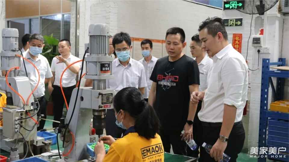 罗总一行在麦总的带领下,先后参观了依麦五金生产组装流水线、仓库、自动化生产线、研发室等。