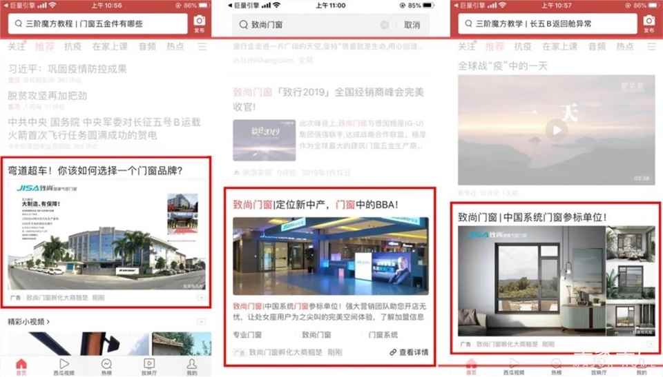 就在这个不寻常的2020年,全国诸多门窗企业与品牌面临经营困难,纷纷想方设法收缩经营成本、控制各项费用支出的大背景下,致尚门窗整装再出发,逆流而上与全国一线城市高铁枢纽站、高速高炮等签订战略合作,以及与国内权威互联网媒体与平台,如百度、京东、今日头条与新浪家居等建立战略合作伙伴关系,并联动自媒体与新媒体实现线上与线下的品牌传播,实现致尚门窗陆空网立体式品牌传播矩阵,再次验证了致尚门窗“大品牌·大手笔·大广告”的传播战略!