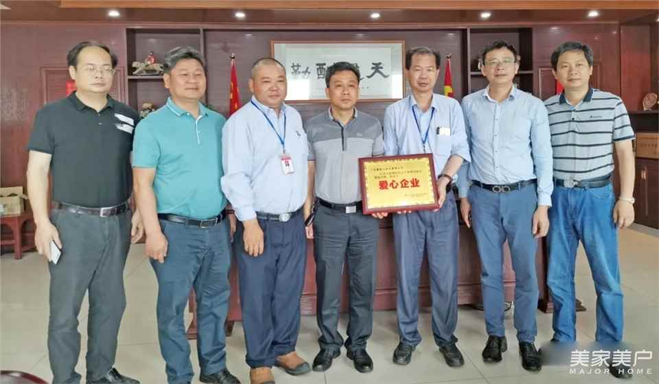 更合镇镇委、商会领导颁发“爱心企业”奖牌