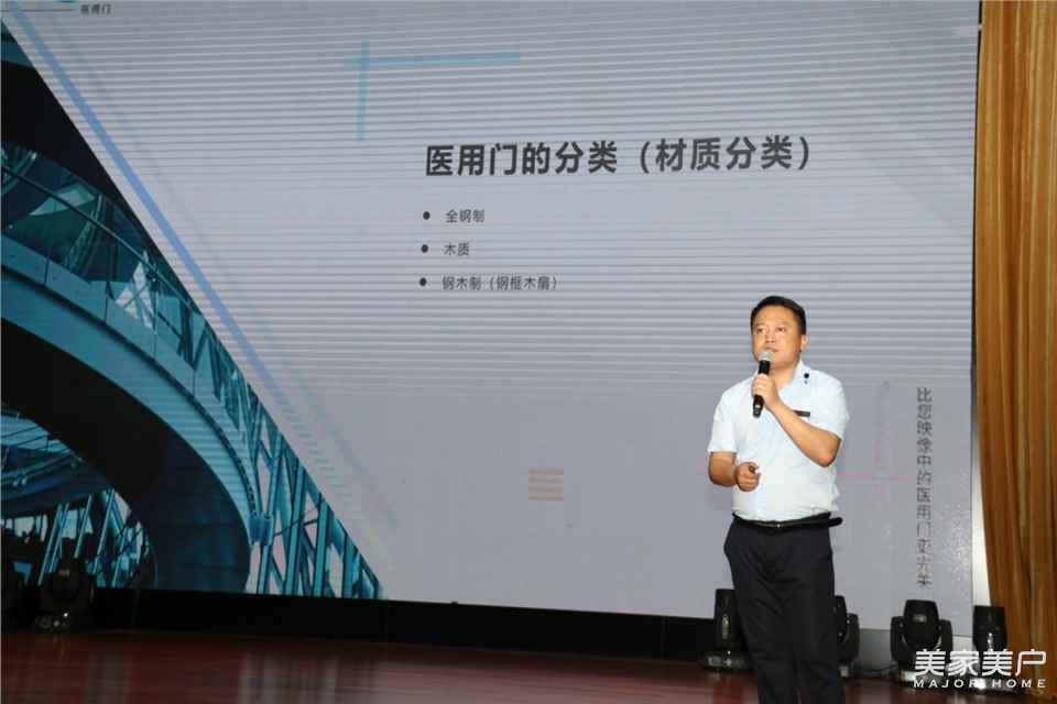 马儿跑的快,全靠有人带!一个企业的美好未来,绝对是因有位灵魂领军人物的引领。映美之所以如此内敛与优秀,则是与其领导人单泽喜密不可分。作为映美医用门总经理的单泽喜,以风趣幽默的语言开始了演讲,他首先向线下来宾和线上网友问好,深入浅出的从健康中国、国民认知、风口产业等方面分析了医用门的行业的发展趋势,谈到市场前景时单总说,全国的大型正规医院、社区医院、乡镇医院等都是医用门的重要使用单位,市场容量很大。映美医用门集全球资源、注重研发 、采用先进设备、精细化制造、产品品类齐全,采用共创、共建、共享模式,与大家共同携手发展。