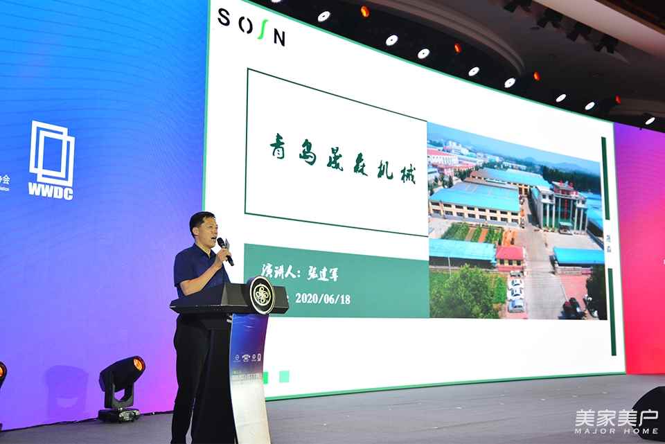 青岛晟森机械有限公司董事长张建军作了“疫情下,中国木门企业如何智变”的主题演讲。