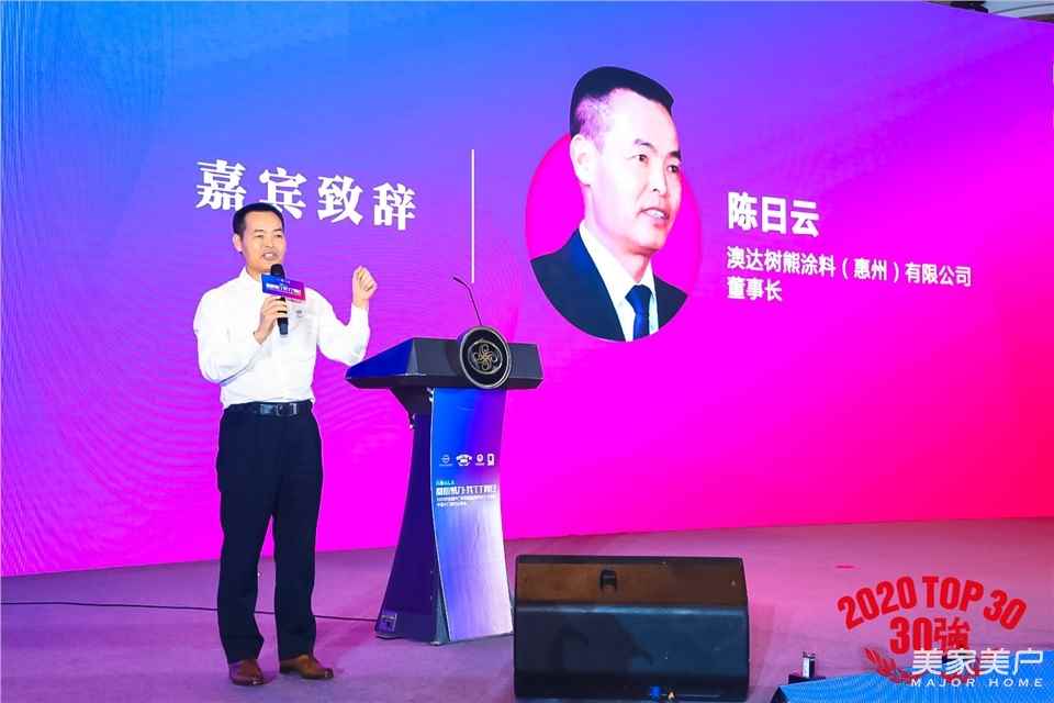 本次年会总冠名、澳达树熊涂料(惠州)有限公司董事长陈日云在年会上发表致辞,他对莅临此次大会的领导嘉宾深表感谢,并盛邀嘉宾到树熊工厂参观。最后,他预祝本次盛会顺利召开,祝愿中国门业的明天更美好。