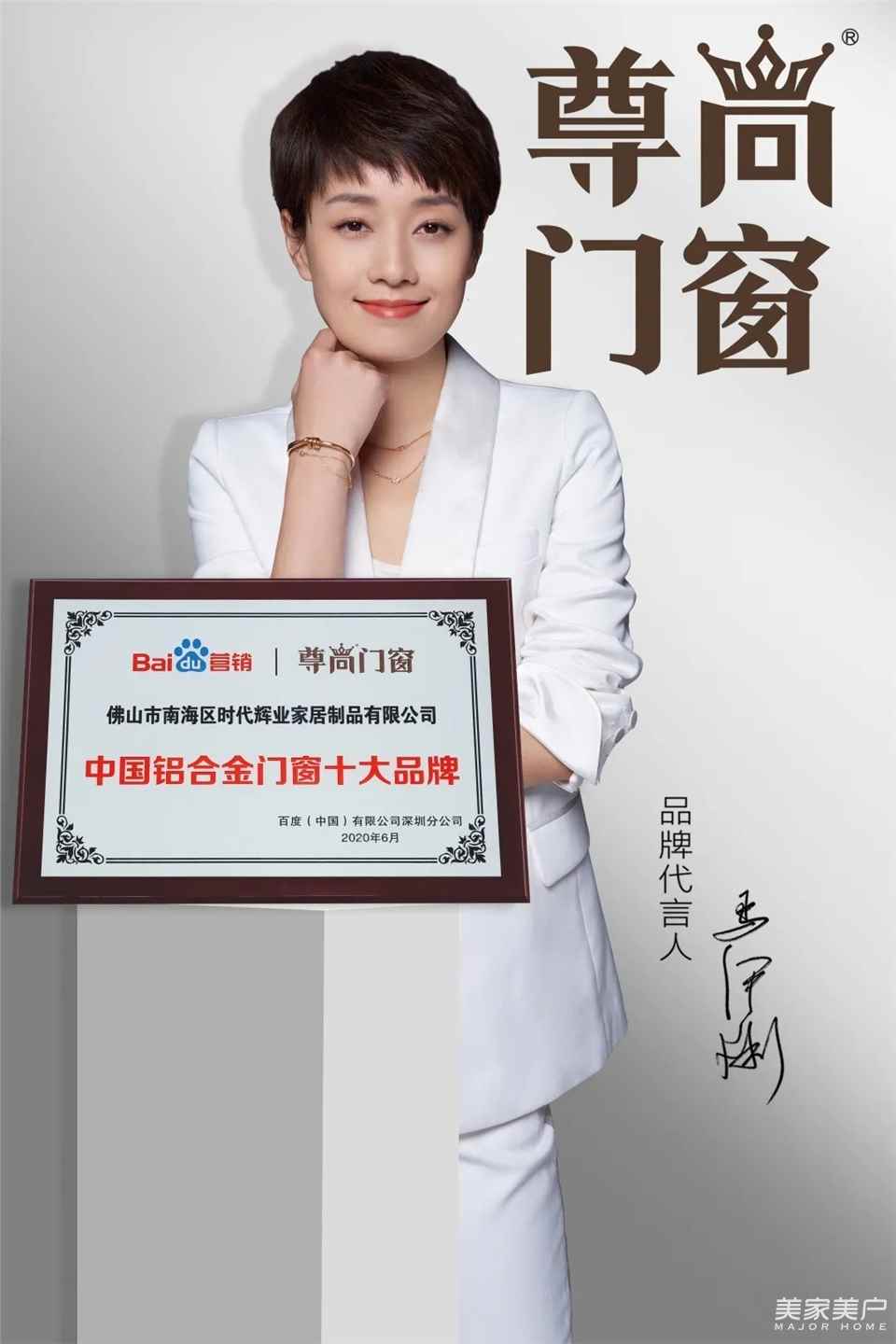 近期,国内一线互联网平台——百度,颁发了“2020年中国铝合金门窗十大品牌”的荣誉给尊尚门窗。