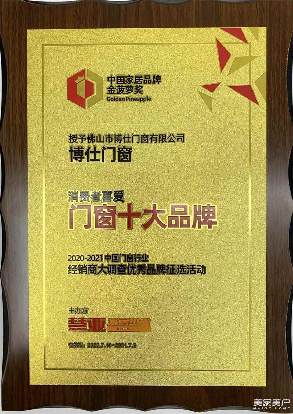 7月10日,由中国建博会和慧亚家居联合主办的2020第五届中国大定制家居营销发展论坛暨中国家居品牌金菠萝奖盛典隆重举行。博仕门窗受邀参加此次盛典,并荣获“消费者喜爱门窗十大品牌”之首。