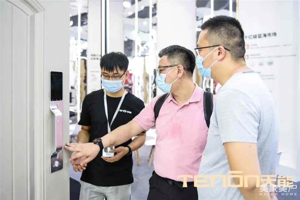 亚太天能2020年新品研发创新不断,指纹锁、智能门、智能晾衣机等新品设计独具一格,现场展品一致获得大众好评。为了提升客户的参与体验感,展会现场设置了智能门锁体验区,让客户近距离感受智能门锁提供的便捷生活体验。