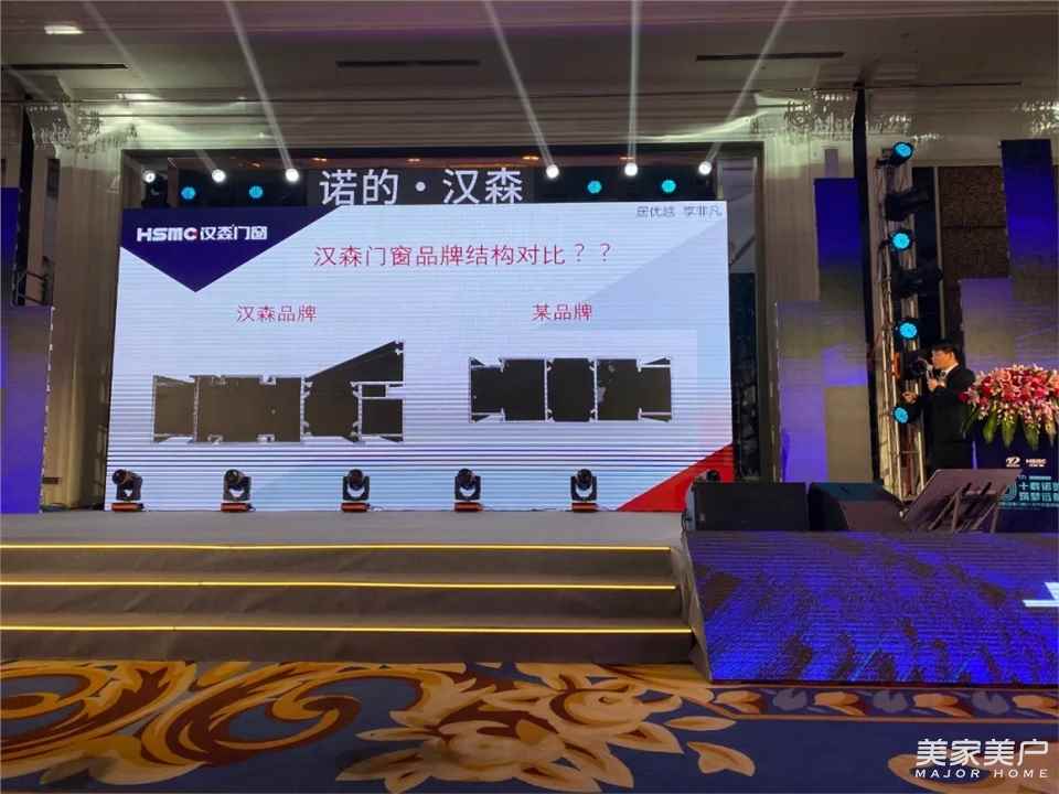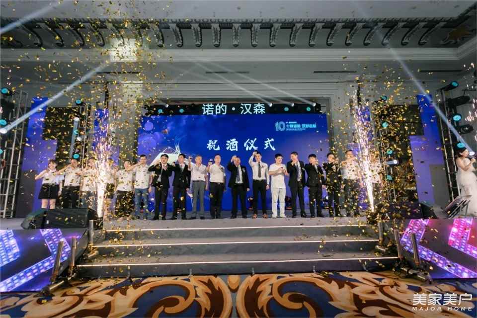 晚宴8点正式开始,嘉宾进场,宾客满座,正式开启,诺的集团“HSMC汉森门窗”十周年盛典,甘总经理发表致辞,晚宴正式启动!