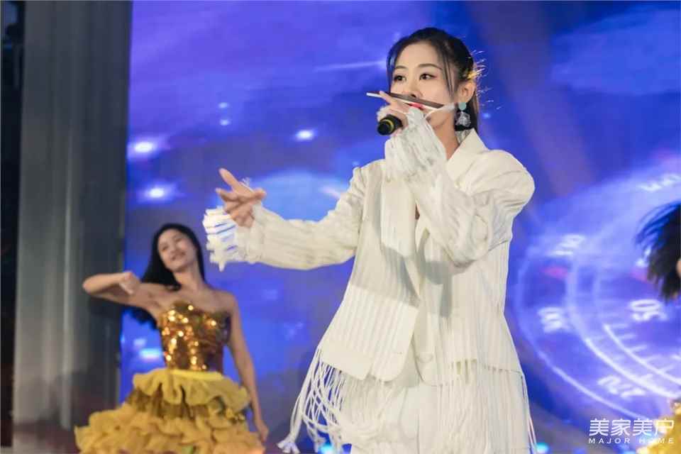 随着舞台灯光开场秀结束后,著名歌手马郁登台献唱,伴随着歌声,晚宴进入了高潮阶段,现场热闹非凡,一首首动听的歌,声声入心,让人陶醉其中!