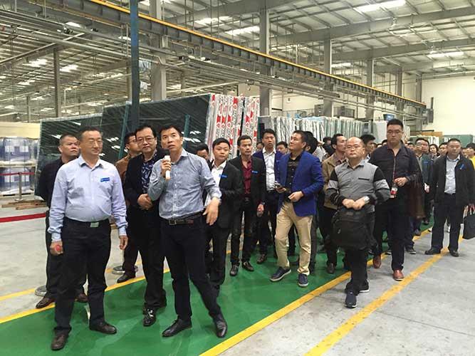 在张总带领下,考察团一行参观了德国耶鲁铝材电脑数控切割自动化生产线、奥地利LISEC中空玻璃生产线;此外,参观森鹰产品S86铝包木内开窗,采用外铝无缝焊接技术,防水密封性更好;开启内采用德Schiegei密封胶条,密封性及回弹性是普通三元乙丙胶条的3倍,保温隔音性能更好。