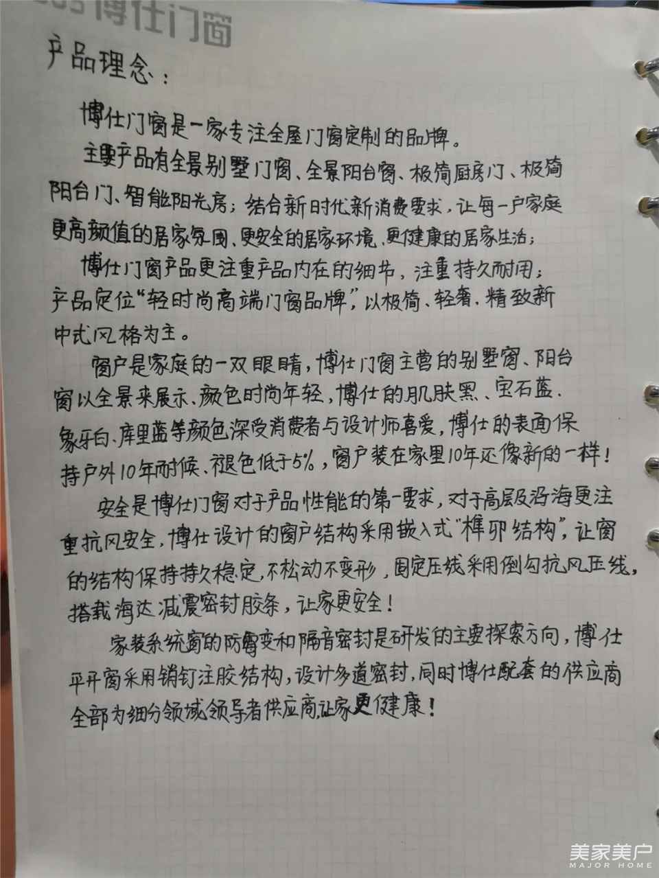为了更多的了解博仕门窗,我向张经理表态愿意自费报名参加培训。通过这一次培训,了解到这样的培训是经常性的举办,最主要都是接地气的干货。而且通过自我介绍,明名就坐,添水加饭等小细节感受到了博仕门窗的家文化,还有博仕门窗的愿景,必胜的理念,6s管理,350多项专利,配件采用细分领域的顶级者领导者等,无一不体现出博仕的大家风范和强大到深入骨髓的灵魂!