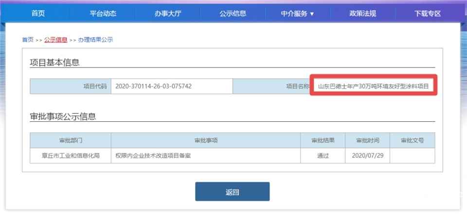 涂界记者8月4日获悉,由山东巴德士化工有限公司计划投资建设的“年产30万吨环境友好型涂料项目”已通过章丘市工业和信息化局审批。目前暂未披露该项目具体涵盖的产品系列,但从产能规模设计及公司发展现状来看,该项目预计包括了建筑涂料产品等。