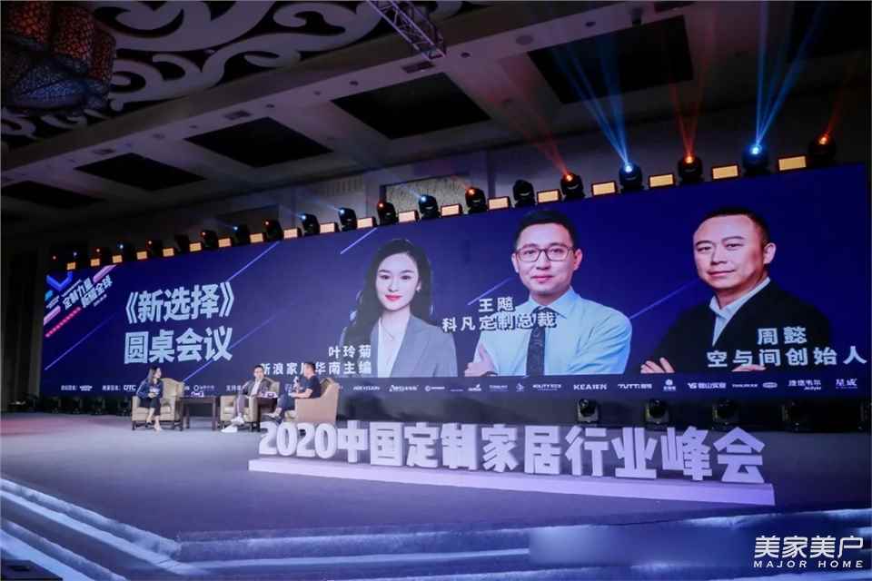 在2020中国定制家居行业峰会上,由新浪家居华南主编叶玲菊主持,邀请了科凡定制总裁王飚与空与间创始人周懿,针对“新选择”这一主题发布了自己的不同见解。