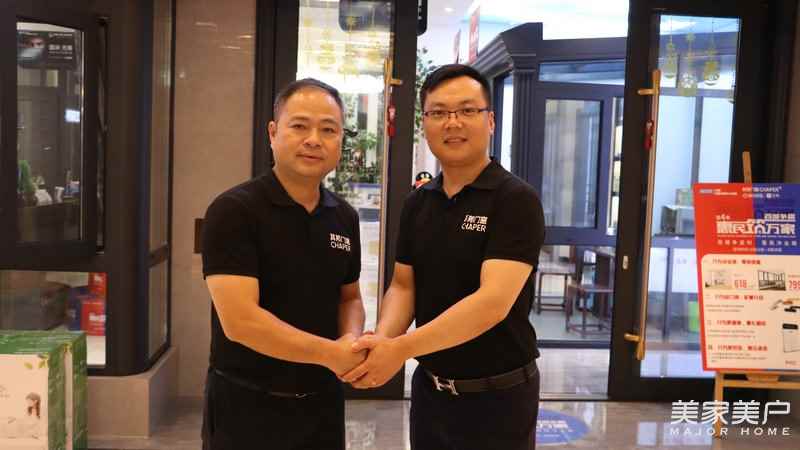 ▲其邦门窗董事长黄东建(左)和其邦门窗合肥旗舰店总经理孙多领(右)