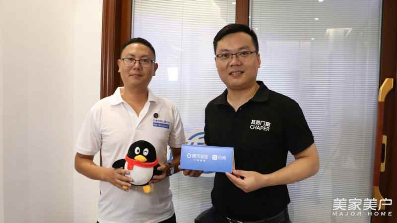 ▲其邦门窗合肥旗舰店总经理孙多领(右)与腾讯家居·门窗频道运营总监杜锋(左)