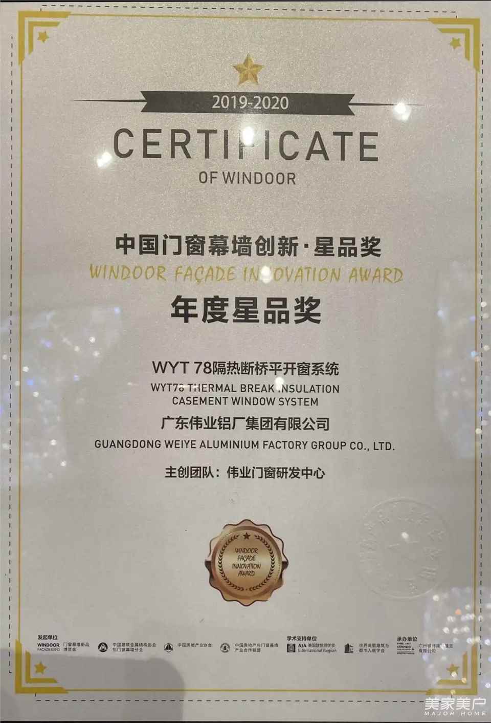 展会期间,伟业铝材在第第15届“中国门窗幕墙行业年度大型读者调查活动评选中伟业铝材凭借其品牌实力和产品品质夺得“建筑型材十大首选品牌”,伟业WYT78隔热断桥平开窗以其出色的产品实用性和功能性,赢得了各评审专家的一致认可,摘星成功-斩获本届创新星品奖。