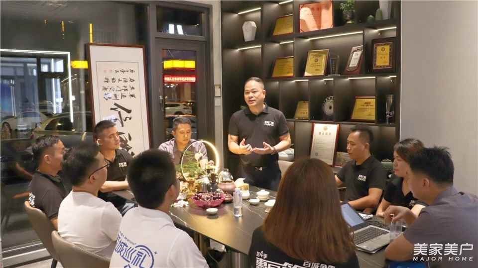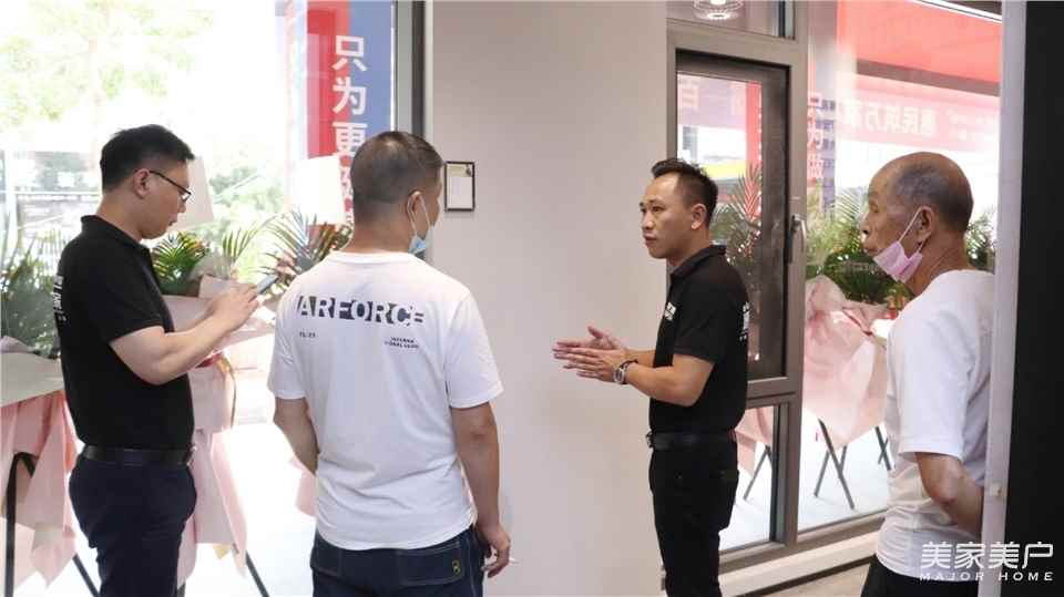 ▲其邦门窗董事长黄东建携百城巡礼指挥团对终端门店进行实战指导