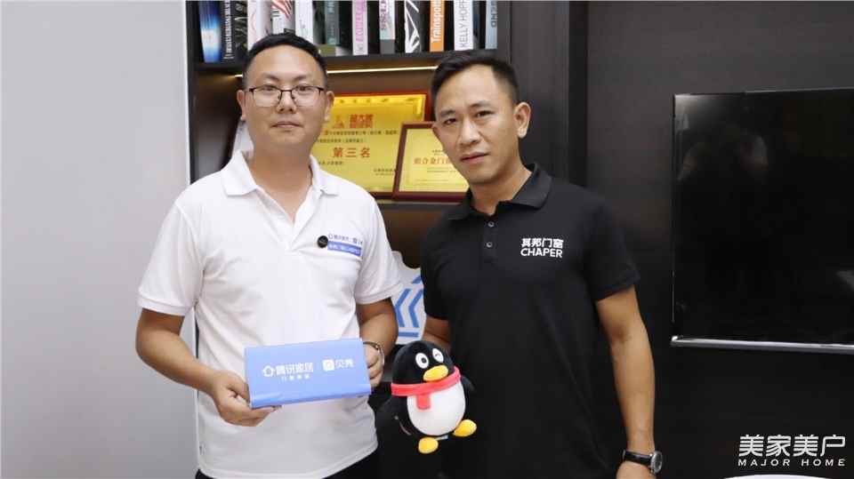 ▲其邦门窗石狮旗舰店总经理程百泉(右)与腾讯家居·门窗频道运营总监杜锋(左)