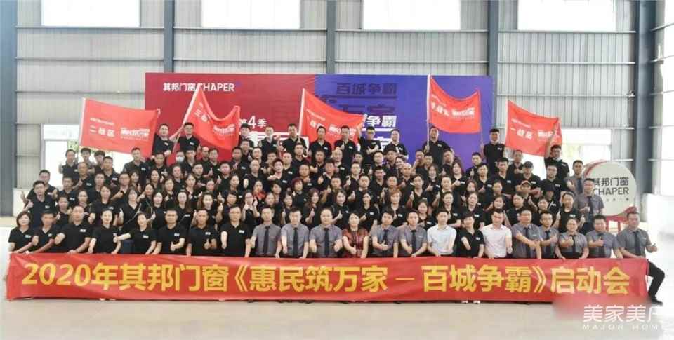 ▲2020年其邦门窗百城争霸启动会合影,开启赋能终端新篇章