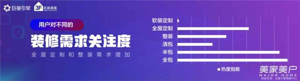 陈景清在报告中表示,数据显示,旧房改造和精装房装修成为越来越多用户关注的焦点。在消费升级的浪潮下,80、90、00后新生代消费群体逐渐成为家居消费的主力军,也催生了整装模式的出现,逐渐成为广大消费者选择的主要装修方式之一,因而大众对整装和全屋定制的关注度也将越来越高。