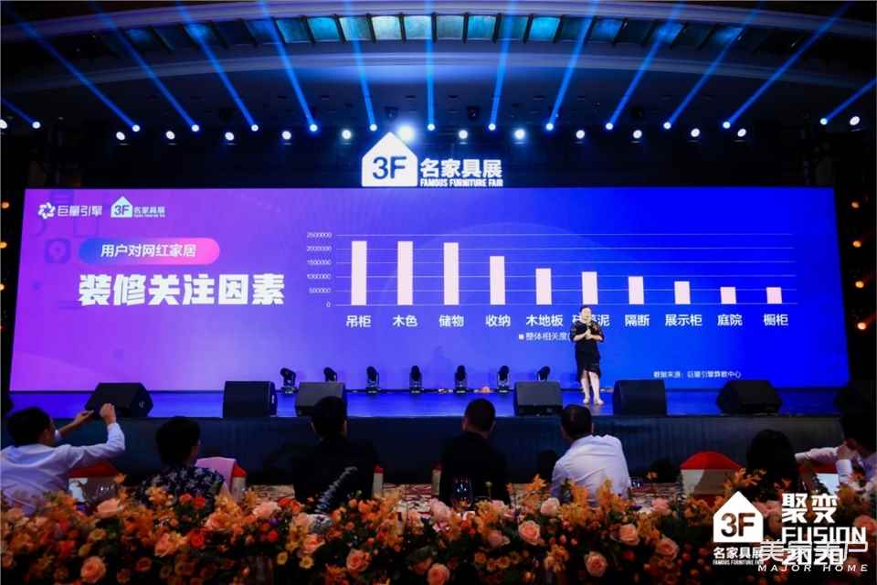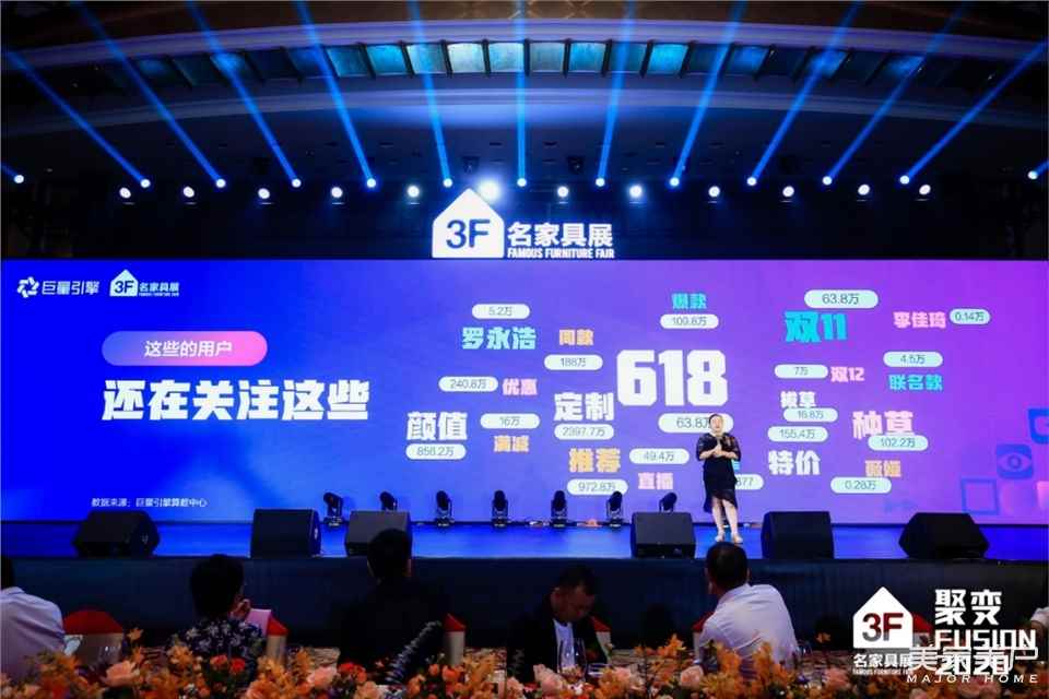 本届展会,名家具展组委会联合巨量引擎发布了家居消费趋势指数报告,依托巨量引擎的精准数据,巨量引擎广东分公司高级营销总监陈景清作了题为《网红经济下的家居消费变革》的报告。