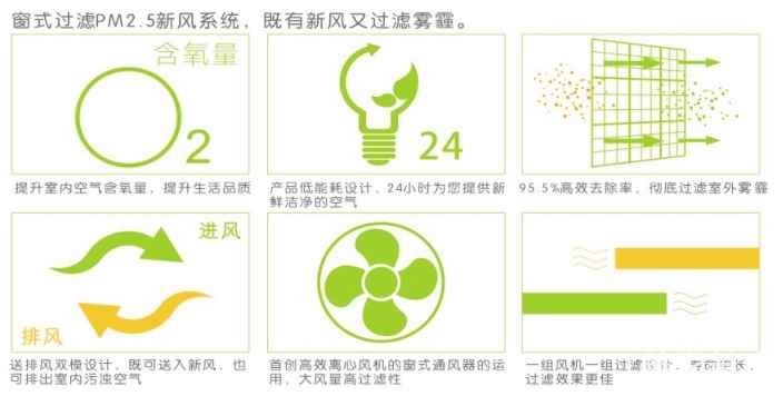 ✦首创高效离心风机的窗式通风器的运用,大风量高过滤性