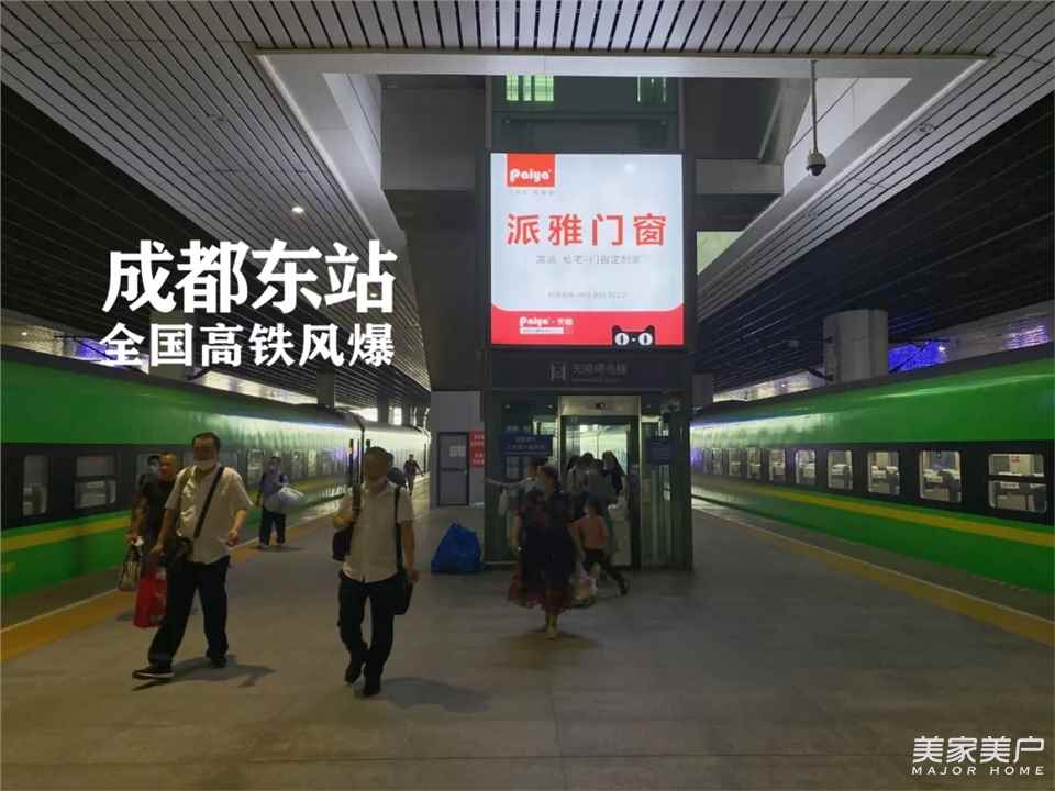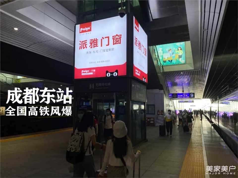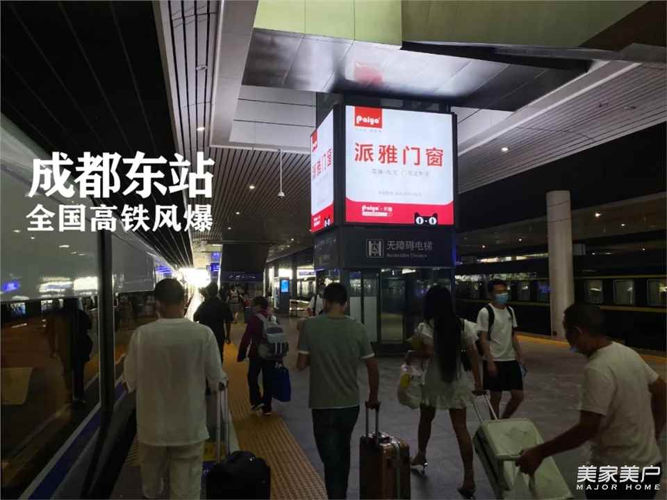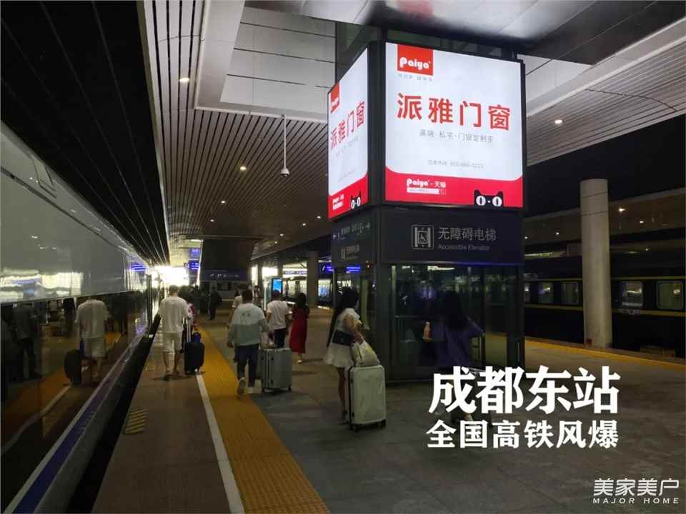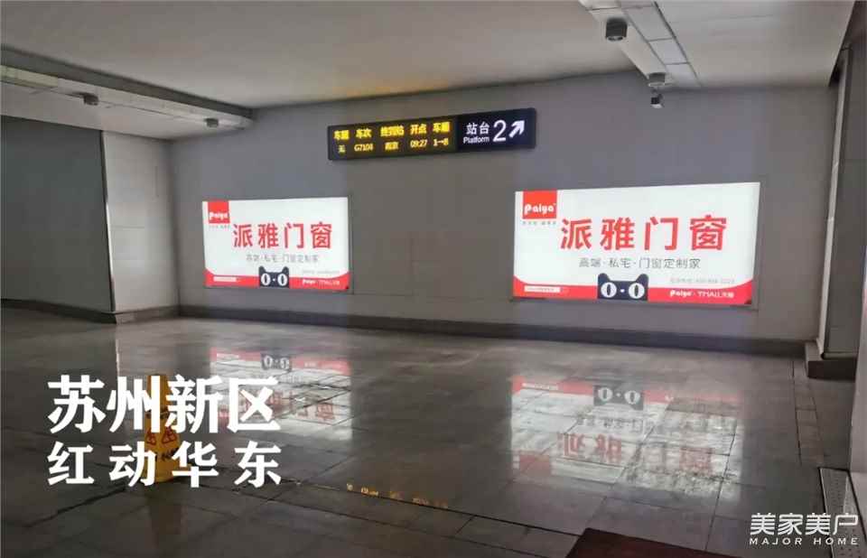 看得见的品牌实力,看得见的派雅速度!本次高铁广告投放覆盖全国城市经济核心高铁枢纽站点,包括上海虹桥站、无锡站、无锡新区站、苏州阳澄湖站、南京南站、苏州园区站、苏州新区站、常州站、镇江站、戚墅堰站、成都站、重庆北站等高铁站,12站联动投放,在一流品牌林立的高铁站,面向数以千万级的高端客流量,无论在候车大厅、检票口、出站口等黄金高客流量区域,都能看到派雅门窗广告屏,现场视觉震撼冲击,展现派雅品牌王者霸气。派雅门窗优选囊括全国核心城市高铁站,全面精准传达派雅门窗品牌价值,抢占品牌传播高地。这必将大幅提升派雅品牌的曝光度与知名度,同时也进一步将“专注理想人居,尊享幸福定制”的品牌主张传递给更多的消费者!依托大传播战略,搭载中国高铁速度,派雅门窗将凭借强劲的产品力和传播力向全球展现中国门窗品牌的实力与魅力。
